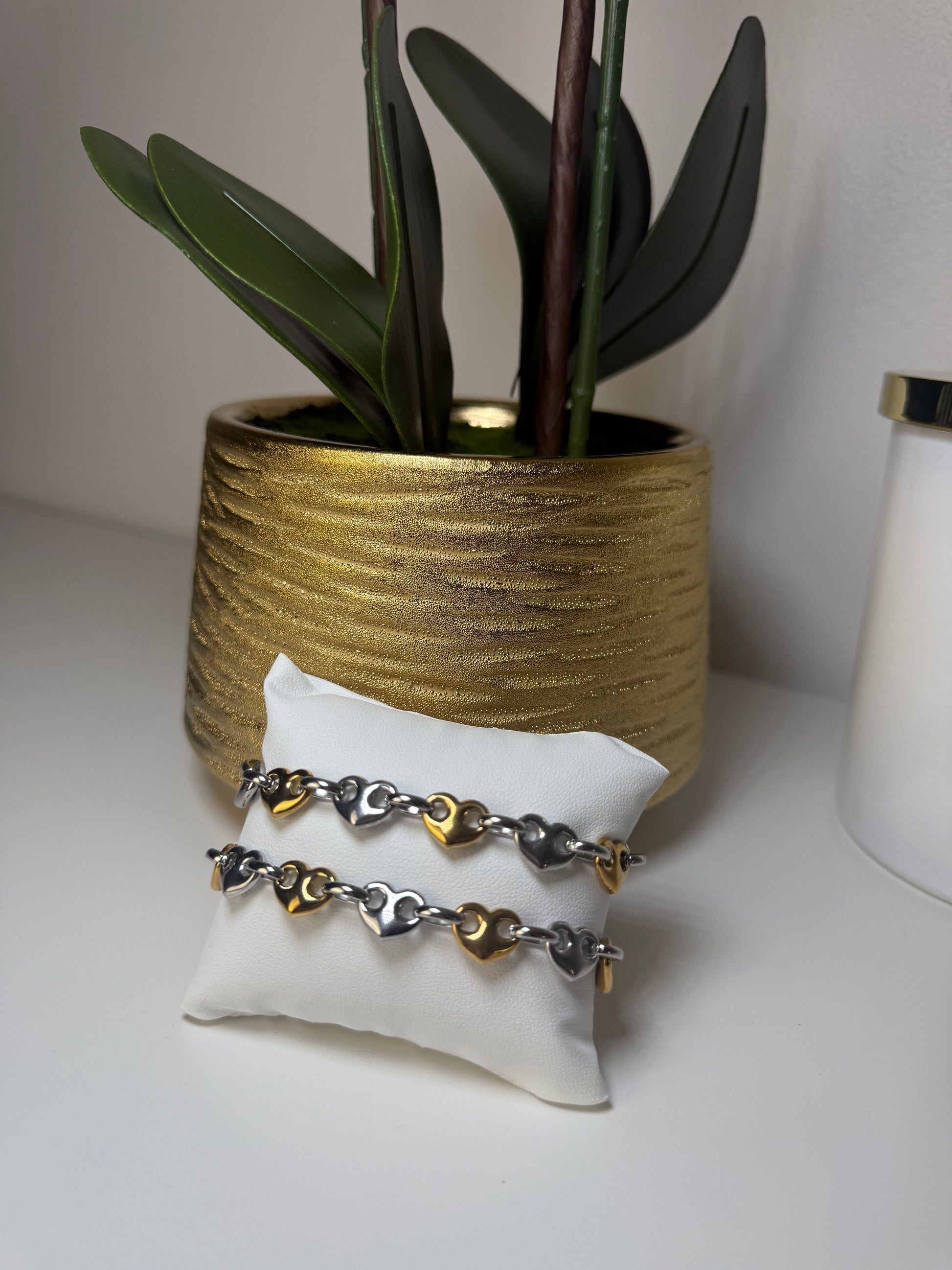 Nuestras joyas están elaboradas con acero inoxidable de alta calidad, un material resistente al agua, al desgaste y al paso del tiempo. Diseñadas para realzar tu estilo con un brillo impecable, son perfectas para el uso diario sin preocuparte por la oxidación o la decoloración.